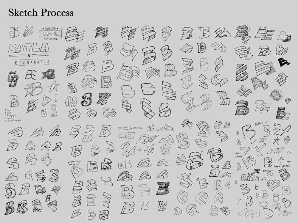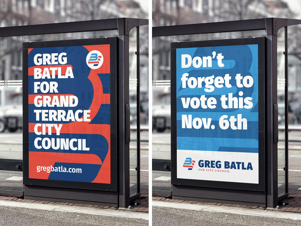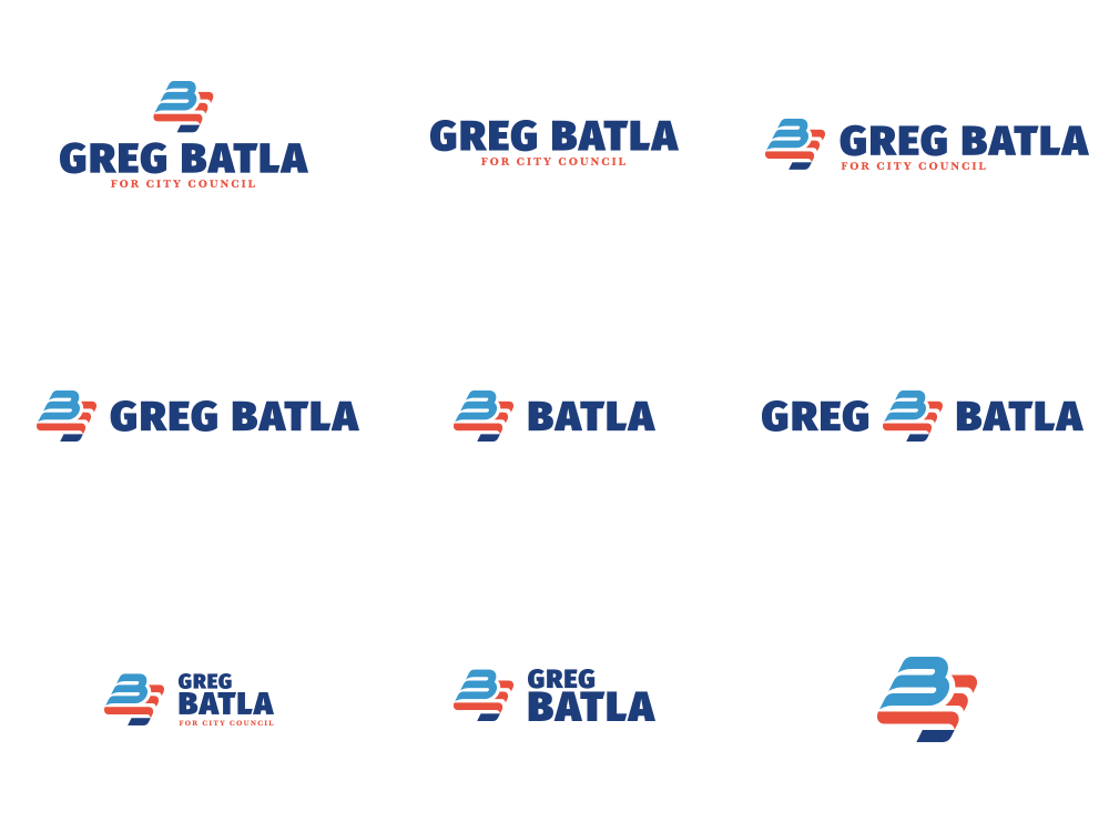 In 2018, I was commissioned to create the visual identity for the political campaign of Greg Batla. I designed a logo with various configurations to be flexible across media types from print to social media. The mark is a simple grid-based B shape that integrates smoothly with the stripes of a flag abstraction. I also put together a simple media kit with photographs and video. I photographed him in my home studio and we shot the video on the same day.