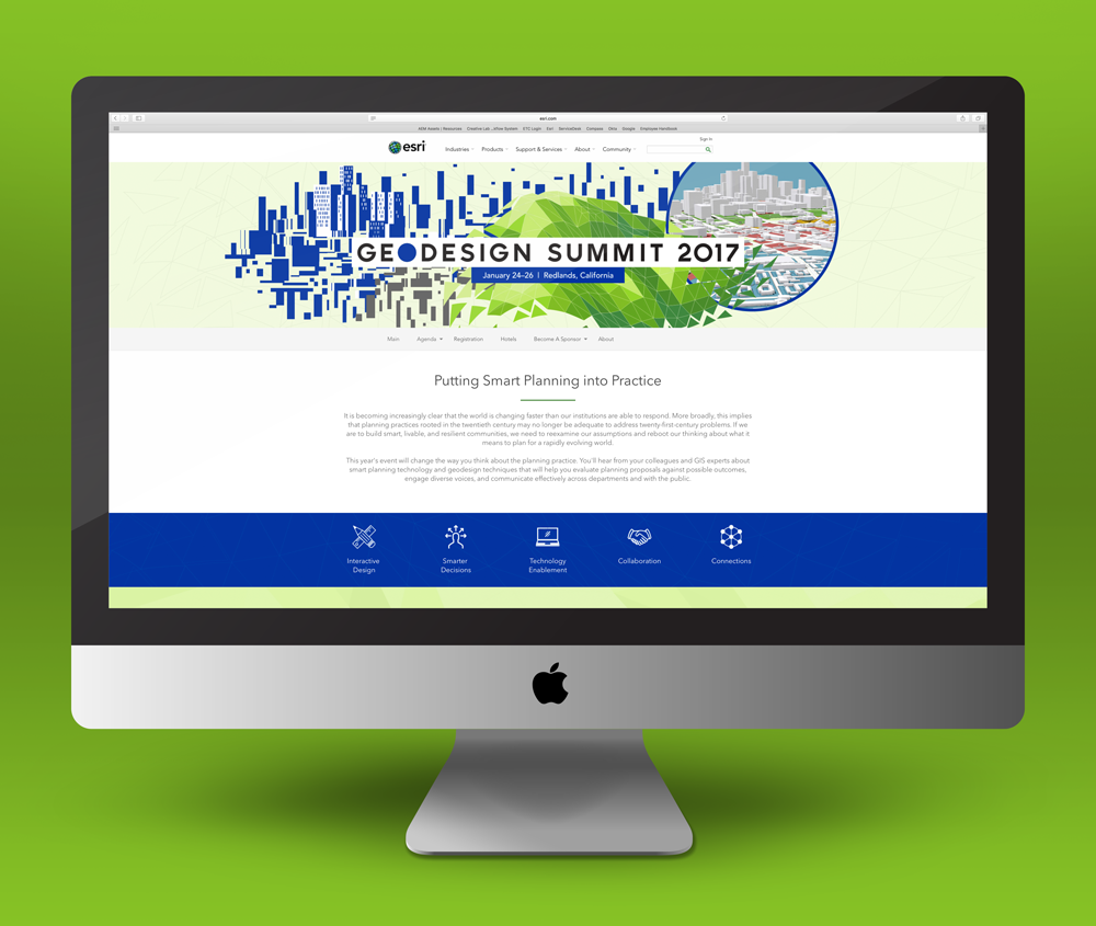 This event brand called for a logotype and branded artwork that could be applied flexibly across a range of media from web banners to signage on site. The artwork will also be used as part of presentation designs and promotional material. My approach was to create a set of basic art elements that can be mixed together in a number of configurations. The typography was custom designed for the event. Its roundness is meant to evoke the silhouette of the earth.